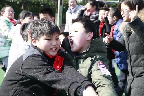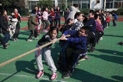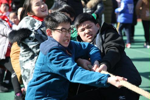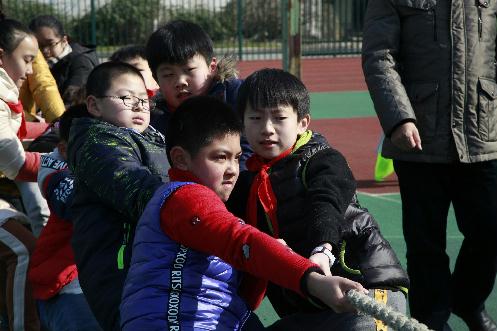 为了丰富同学们的课余生活,培养同学们的团队精神和集体荣誉感,在冬日凛冽的寒风中,附小阳光校区举行了一至六年级的拔河比赛。