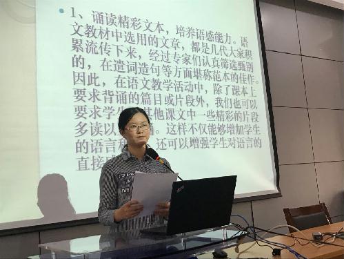 六年级的老师们着眼于在阅读教学中引导学生进行深入的文本解读,在深度阅读的过程中获得深刻的阅读体验,提高学生的语文素养。徐凯老师代表老师们从“诵读精彩文本,不断培养语感能力”,“品读名家名著,坚持语段积累评析”,“吟诵经典诗词,熟背名篇名句”,“重视个性化阅读,有效拓展阅读空间”四个方面阐述了通过调动学生的阅读积极性,帮助学生更好地走进文本,进行广泛阅读和积累,最终达到不断提升学生语文核心素养的深度阅读培养方案。他强调培养学生深度阅读的习惯和能力,不仅有利于提高学生的综合阅读理解能力,更能有效激发学生正面的非智力因素(动机、兴趣、情感、意志)和积极的智力因素(观察、记忆、思维、想象),有助于形成使学生终身受益的健全的人格和创造能力。
