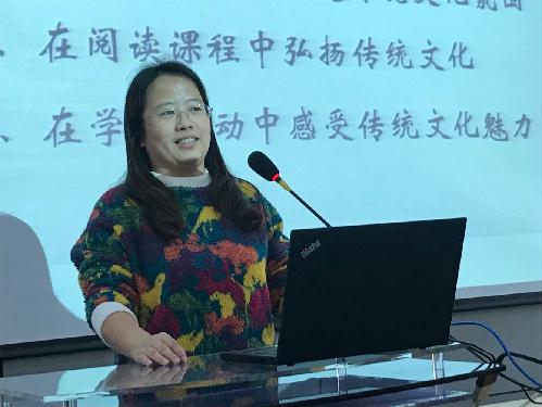 四年级备课组将“文化理解”作为本学期语文学科核心素养培养的着力点,将围绕“中华传统文化”这个主题构建课程,实施教学,开展活动。李胜君老师代表四年级组,从“字词教学”、“诗词教学、“阅读课程”、“环境营造”、“学科活动”五个方面,阐述了老师们的思考和实践。他们将在教学中结合汉字起源,引导学生掌握汉字音形意合一的独特魅力,感受汉字无穷的奥秘。他们将引导学生注重“读中感悟”,鼓励学生探究古诗词背后的知识,把“知人”和“论诗”结合起来,感受中华诗词的博大精深。他们还将运用好“自主一刻”和“名著欣赏”这两个阵地,开展“传承文明,经典诵读”活动,打通学科界限,精选《论语》《增广贤文》等系列创作歌曲,通过“古文新唱”的形式,组织全年级的学生读古文,唱古文,将传统文化与音乐元素相融和,激发学生兴趣,进一步让学生亲近母语,感受传统文化的魅力,用优秀的中国传统文化知识充实和丰富学生的语文学习,为“立德树人”核心育人目标的实现奠定传统文化的根基。