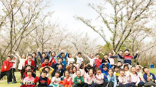 当轻快的步伐踏入樱花盛境,孩子们欢呼起来:“太美啦,太美啦!”映衬着净蓝的天空,樱花如天边的粉霞,走进去,好像自己也会印染上花色。孩子们在林间小憩,这里围成一团睁着好奇的眼睛摸着樱花的枝干;那里手捧满满的花瓣,洒向朋友的脸蛋,嘴里还喊着:“下樱花雨啦!”溢出来的笑容荡漾在粉色的空气里。