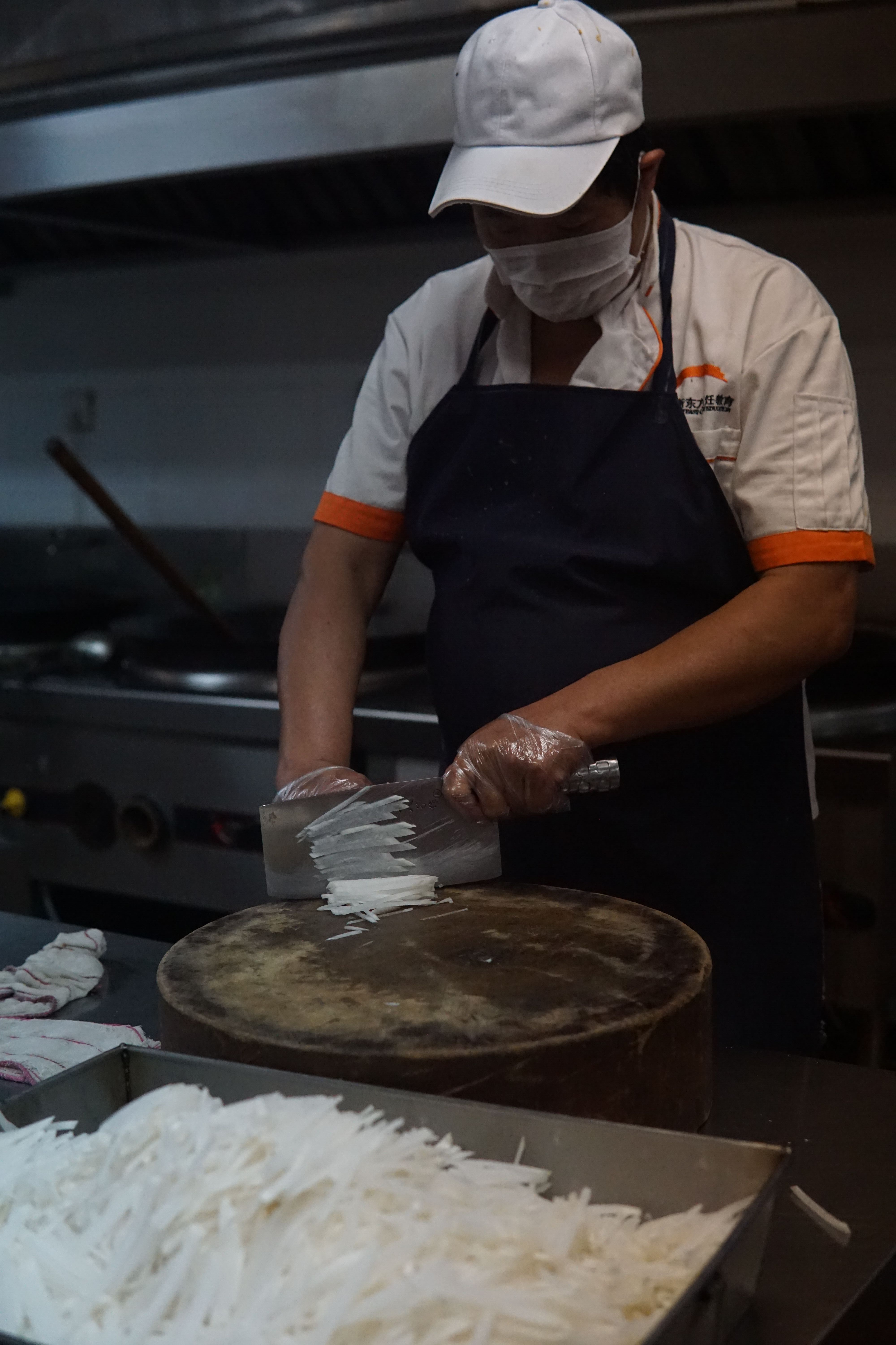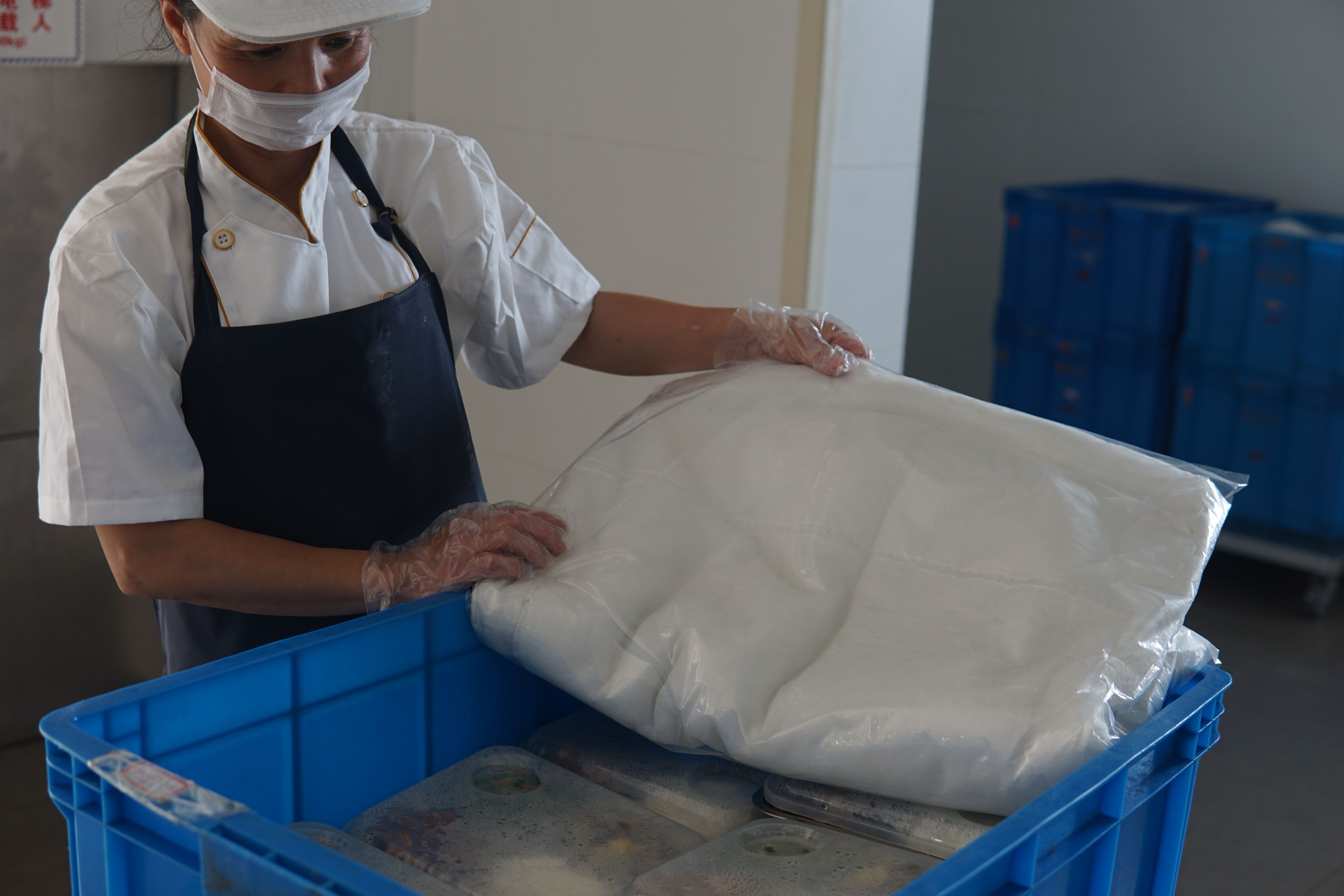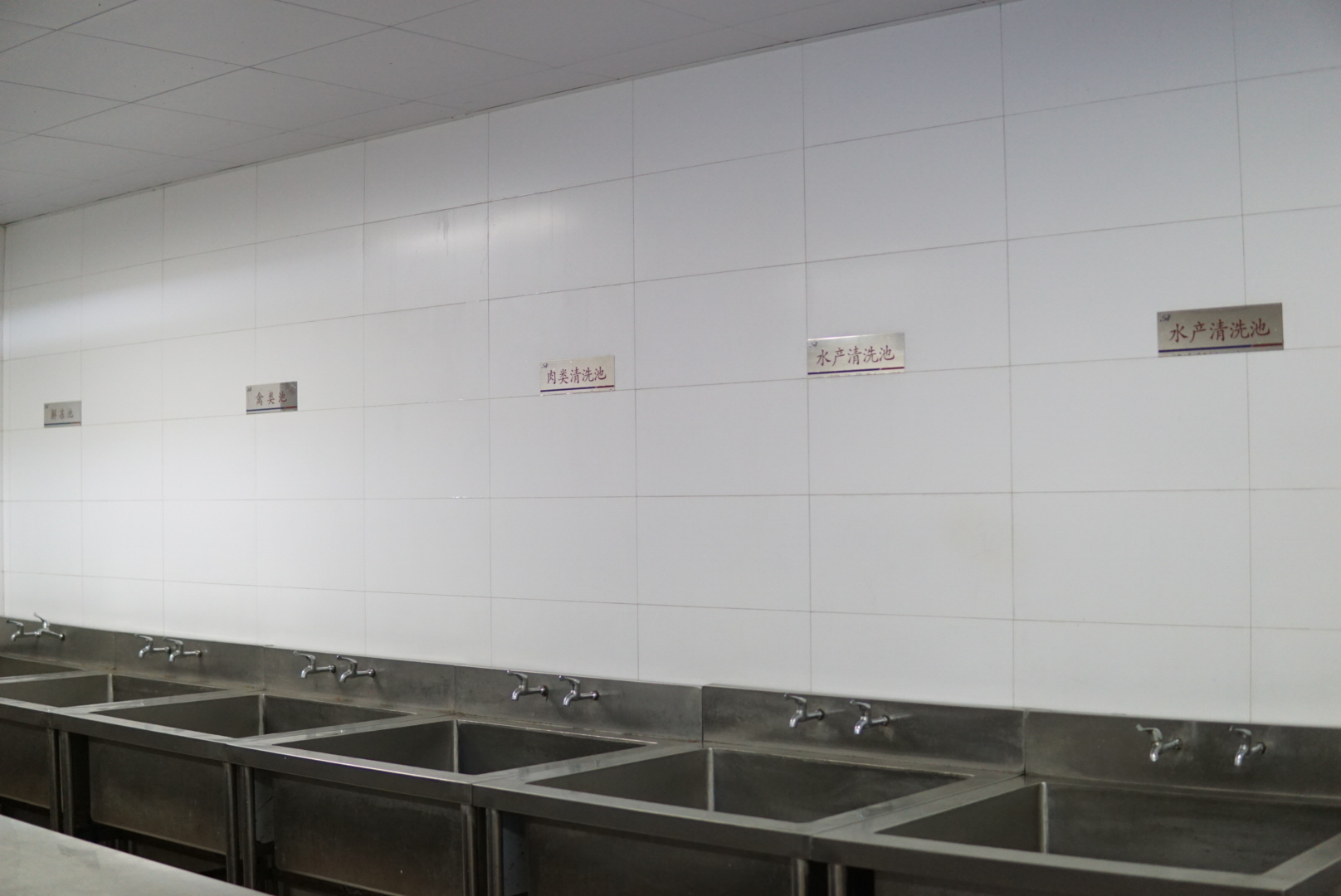 新鲜的食品原材料,整洁的厨房环境,有序的餐饮工作,都给大家留下了深刻的印象。你看,每个水池的用途都标注得清清楚楚,每份佐料的生产日期和保质期都标记得明明白白。食堂阿姨认真择菜的身影,食堂大叔利落刀工的神情,害怕饭菜冷掉而特意使用的保温布和餐盒,无不在描绘着对孩子们用餐的关爱。