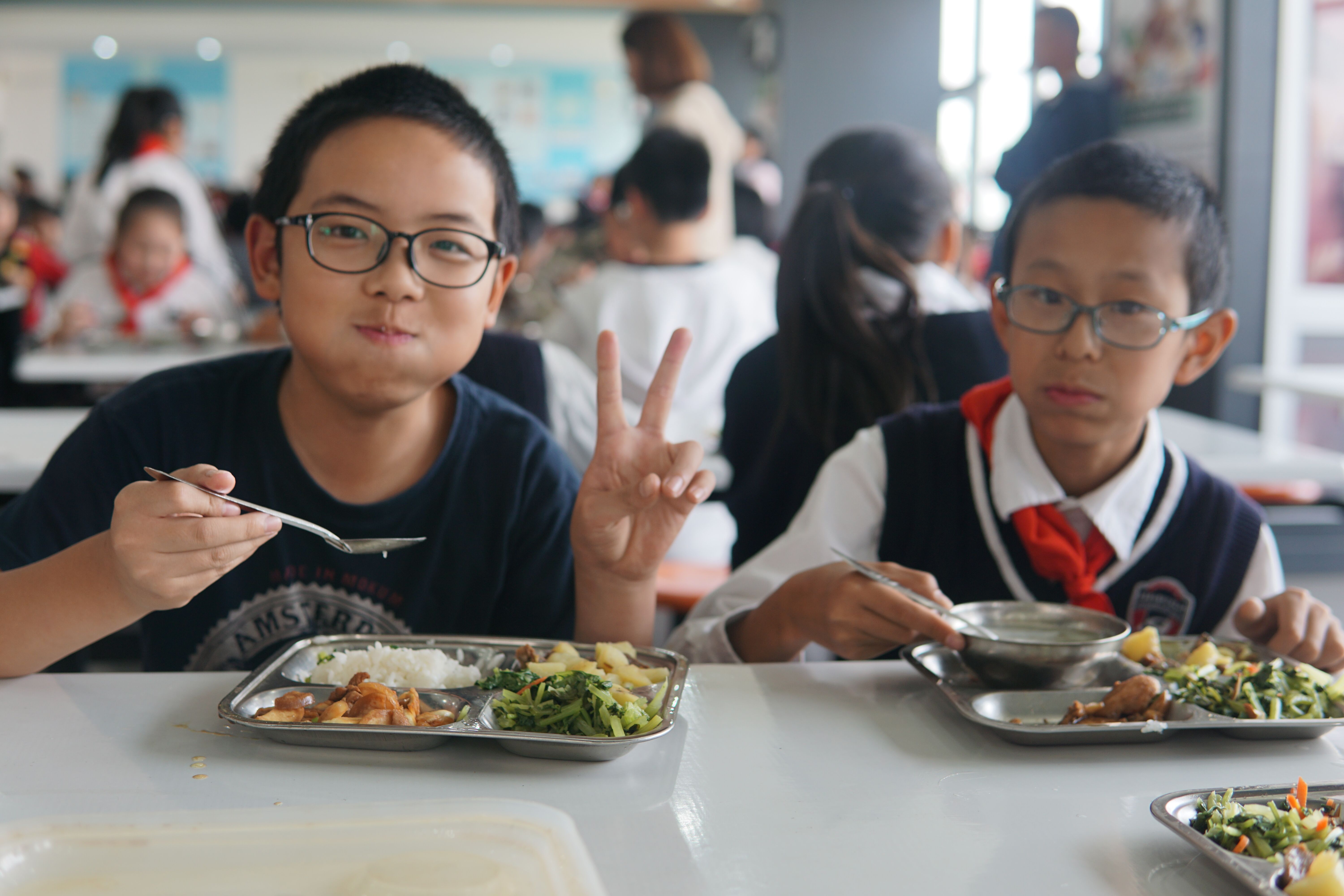 民以食为天,食以安为先。在食品安全的保证下,制作美味可口的饭菜,调适荤素营养的搭配,让每一个学生都吃饱、吃好是我校坚持的育人举措之一。孩子们喜欢学校的午餐,品尝令人放心、欢心的食物,体会共同进餐的温馨时刻,绵延中华文明的饮食文化,为你比心——我们的美好午餐!