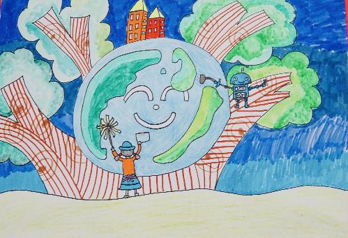 他们用手中的画笔绘出了心中的绿色家园,一幅幅创意十足的画作就是无声的诉说。