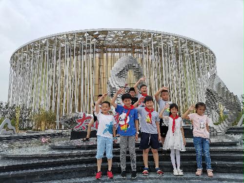 四六中队卢煜婷同学则与队员们在假日中来到了无锡新地标——融创文旅城。络绎不绝的游客,齐全完备的设施,年度全球十佳建筑之一的太湖秀剧场,让队员们见证了家乡日新月异的发展,感受到了祖国的繁荣昌盛!队员们不禁感叹:“沐浴着五彩的晨光,伴着鲜艳的国旗,我们当为中华之崛起而读书!”