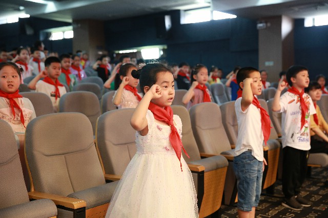火红的队旗高高飘扬,指引前进的方向,鲜艳的红领巾系满理想,载着孩子扬帆起航。通过几个月的不懈奋斗,一年级的孩子们终于如愿加入少先队,成为光荣的少先队员!他们个个精神饱满,脸上洋溢着自信、自豪的笑容。在队旗下,全体少先队员们庄严的宣誓声响彻在校园的上空。在大队辅导员冯老师的带领下,全体新队员起立呼号。“准备着,为共产主义事业而奋斗!”“时刻准备着!”从孩子们响亮的呼号声中我们感受到了坚毅和责任,从孩子们庄严的神情中我们也看到了祖国的未来和希望!